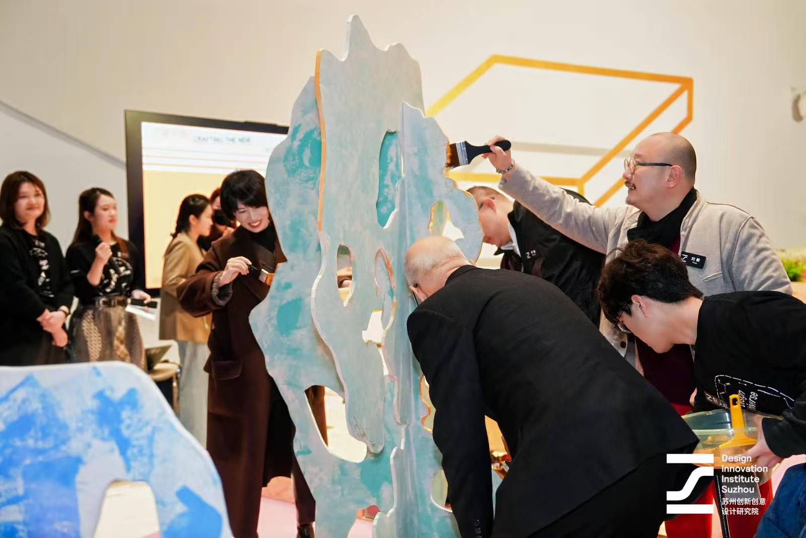 “金砖”作为中国古代的创新创意智慧结晶,艺艺术家在致敬中国传统文明与技艺的同时,也以此壁画创作祝贺苏州创新创意设计研究院勺开启。漂浮的金砖画面框架邀请大家打开想象力,并一起注入更多的共创活力。