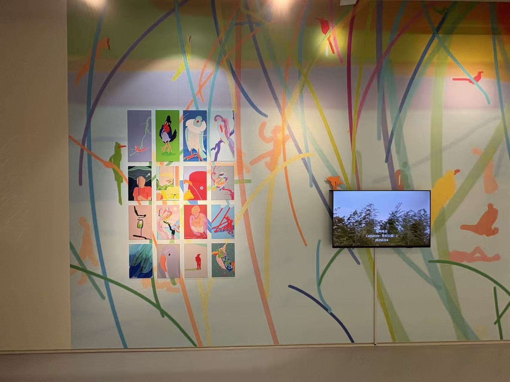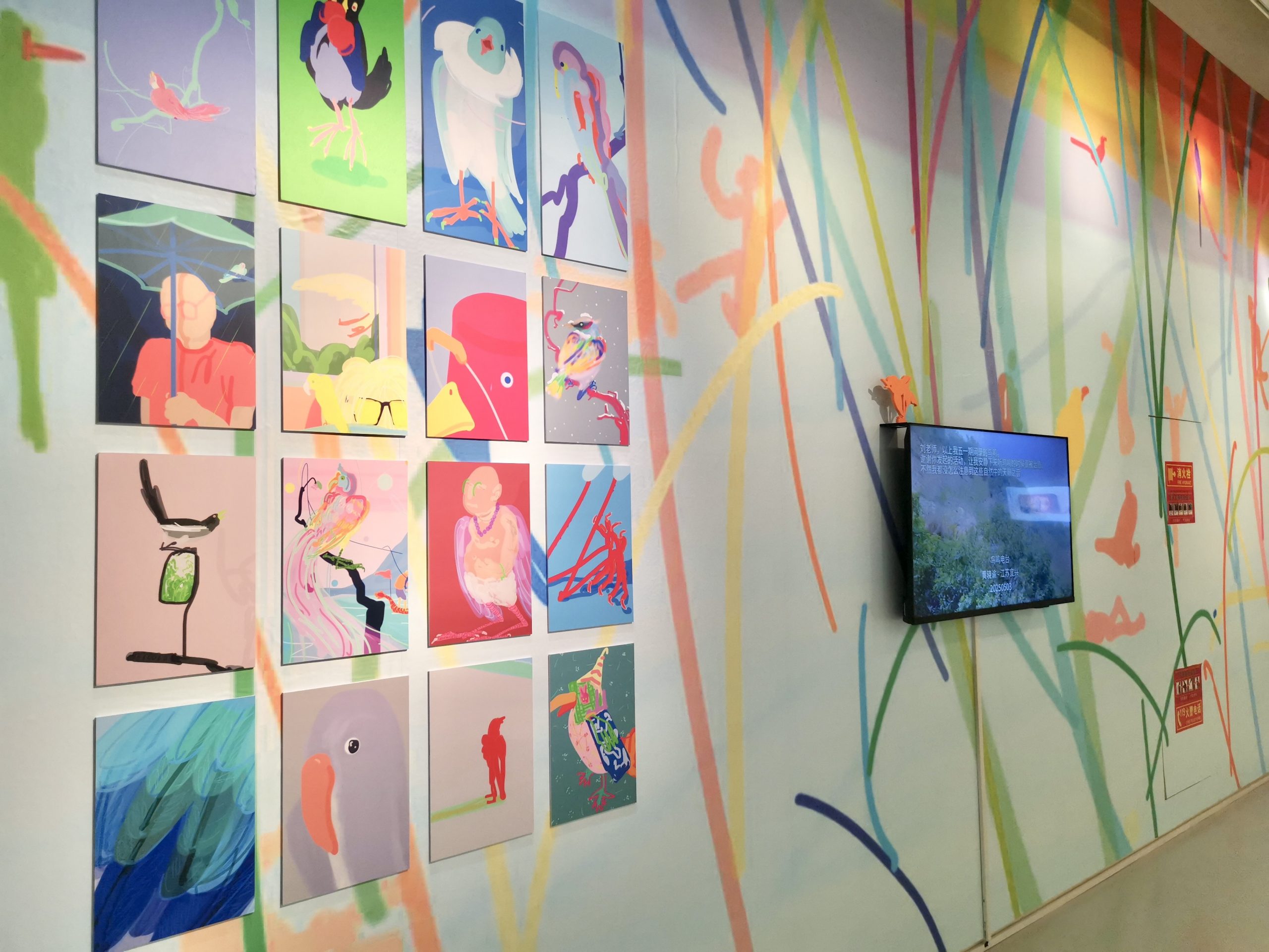本次展览聚焦艺术家刘毅的《鸟鸣电台》,以文献展的形式呈现这一项目的多维脉络——从“鸟鸣电台”的概念诞生溯源,到极具辨识度的主视觉设计,再到艺术家以手机为创作载体的小鸟绘画作品,均在此一一亮相。同时,记录项目历程的纪录片、与多家机构联动共创的合作海报,以及充满温度的《邻居》作品也同步展出,全方位勾勒出《鸟鸣电台》的创作轨迹与艺术张力。