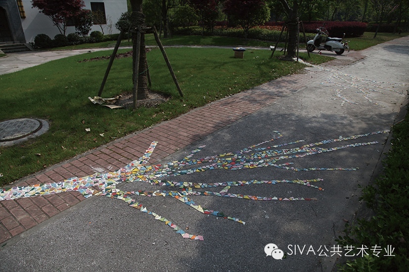 这个作品为“扭”是想在校园这个公共空间环境下利用原本格局的外部线条进行局部变异扭曲,在不改变几何形态的情况下利用二维的变异产生三维空间的变化,在校园空间生活带来不同视觉影响和心理感受。